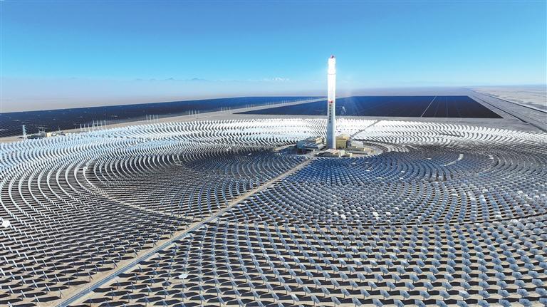 阿克塞汇东75万千瓦光热+光伏试点项目实现全容量并网发电,标志着国家首批“沙戈荒”项目中顶级规模的塔式光热项目正式投产。新甘肃·甘肃日报通讯员 何永旺 别尔哈里
